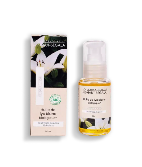L’huile végétale de lys blanc peut s’utiliser en traitement du masque de grossesse, des taches de vieillesse et des taches brunes (taches de soleil, de naissance, de rousseur…).